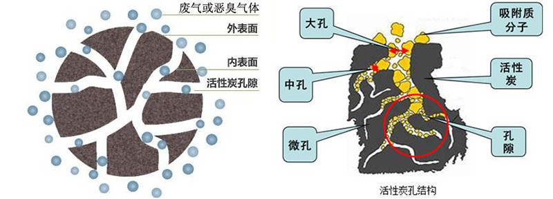 根據(jù)吸附過程中,活性炭分子和污染物分子之間作用力的不同,可將吸附分為兩大類:物理吸附和化學(xué)吸附(又稱活性吸附)。廢氣中的有機(jī)成分被吸附到活性炭纖維的微孔中,從而在炭纖維微孔內(nèi)形成一層平衡的吸附濃度,由于分子之間擁有相互吸引的作用力,當(dāng)一個(gè)分子被活性炭?jī)?nèi)孔捕捉后,會(huì)導(dǎo)致更多的分子不斷被吸引,直到添滿活性炭纖維孔隙為止。須指出的是,不是所有的微孔都有吸附作用,這些被吸附的有機(jī)物分子的直徑須是要小于毛細(xì)孔的孔徑,即只有當(dāng)孔隙結(jié)構(gòu)略大于有機(jī)物分子的直徑,能夠讓有機(jī)物分子完全進(jìn)入的情況下才能保證被吸附到微孔中,過大或過小都不行,這需要通過不斷地改變?cè)牧虾突罨瘲l件來創(chuàng)造具有不同的孔徑結(jié)構(gòu)的吸附劑,從而適用于各種有機(jī)物的吸附。